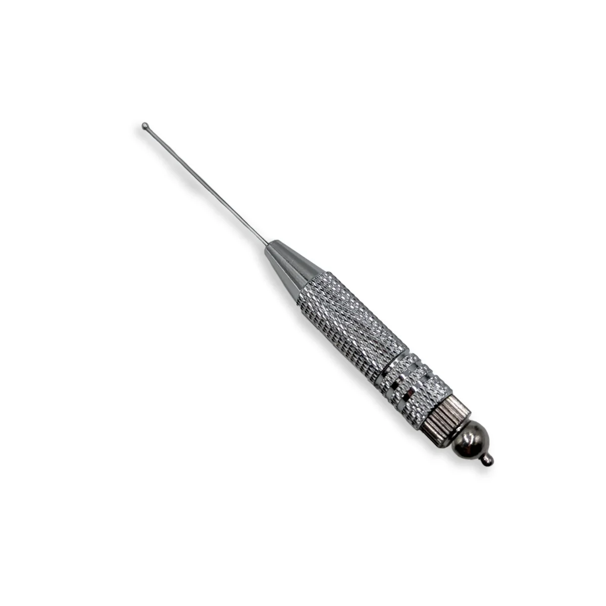 Silver-plated spring-loaded probe for acupressure and auriculotherapy. Designed for precise stimulation of acupuncture points with gentle, consistent pressure. Ideal for practitioners seeking a hygienic, durable, and easy-to-use tool for non-invasive therapy. Silver plating enhances conductivity and resistance to corrosion.